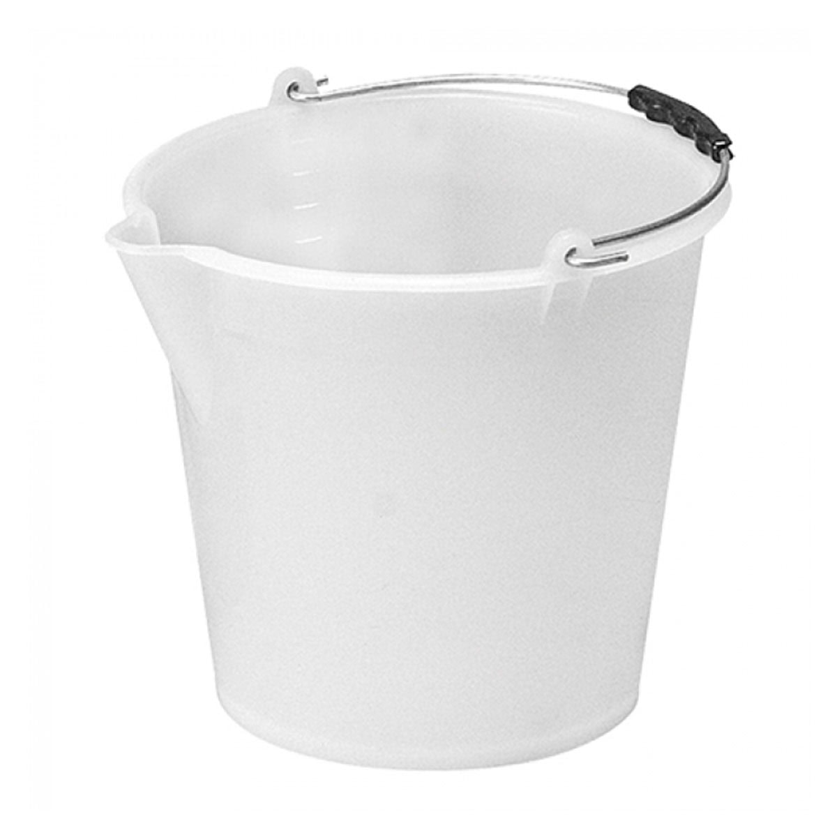 En kraftigare hink av mycket slagtålig plast med ett metallhandtag och en pip för förenklad överföring. Graderad på insidan.